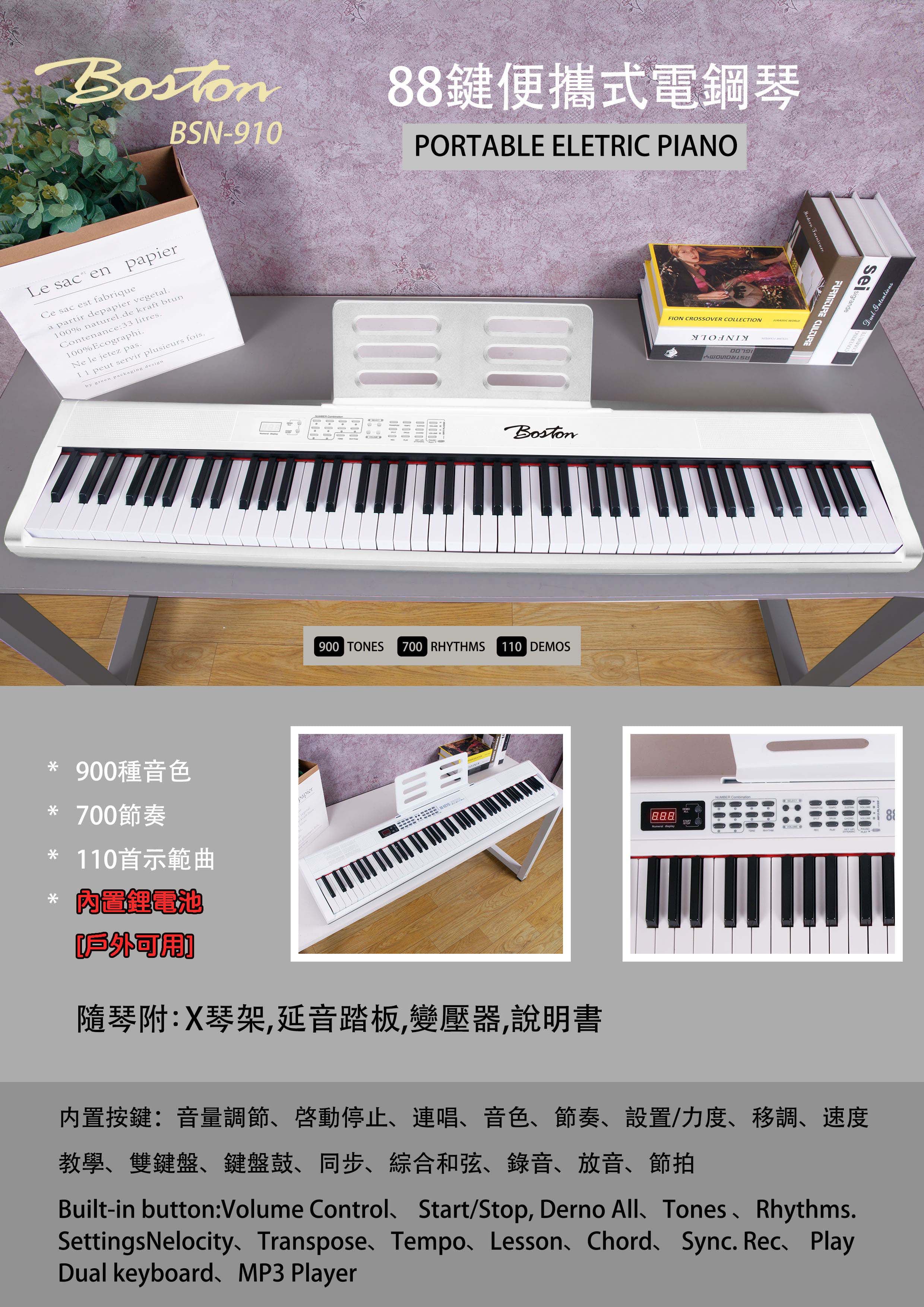 - 隨琴附:X琴架、延音踏板、變壓器、說明書