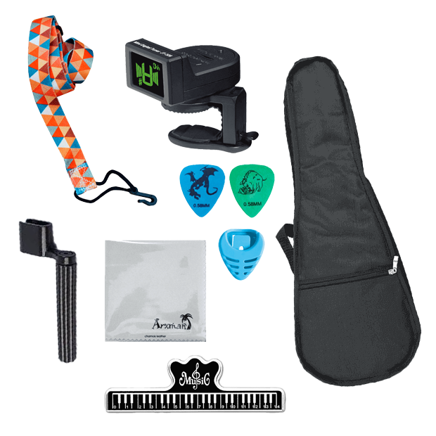 贈送豪禮8件組(琴袋、背帶、調音器、捲弦器、琴布、樂譜夾、PICK、PICK盒)